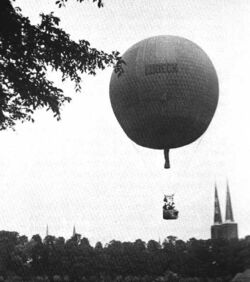 Der Druckereibesitzer Jürgens baute 1784 einen Heißluftballon, aber der Aufstieg fand bei Hannover statt, weil man vermeiden wollte in die Ostsee zu fallen. Einige Jahre später soll die französische Gräfin Chasot, sie wohnte im Schloß „Marli“, einen Ballonaufstieg auf dem heutigen Burgfeld durchgeführt haben. Für eine Frau in damaliger Zeit bewundernswert. Aber sie war als Mannweib verschrien, weil sie immer in Reithosen umhergelaufen ist. 1792 dann Herr Enslen mit dem in Lübeck gebautem Ballon. Im selben Jahr der 44. (!) Aufstieg von Blanchard in Lübeck. Das war bisher die Luftfahrt „leichter als Luft“.